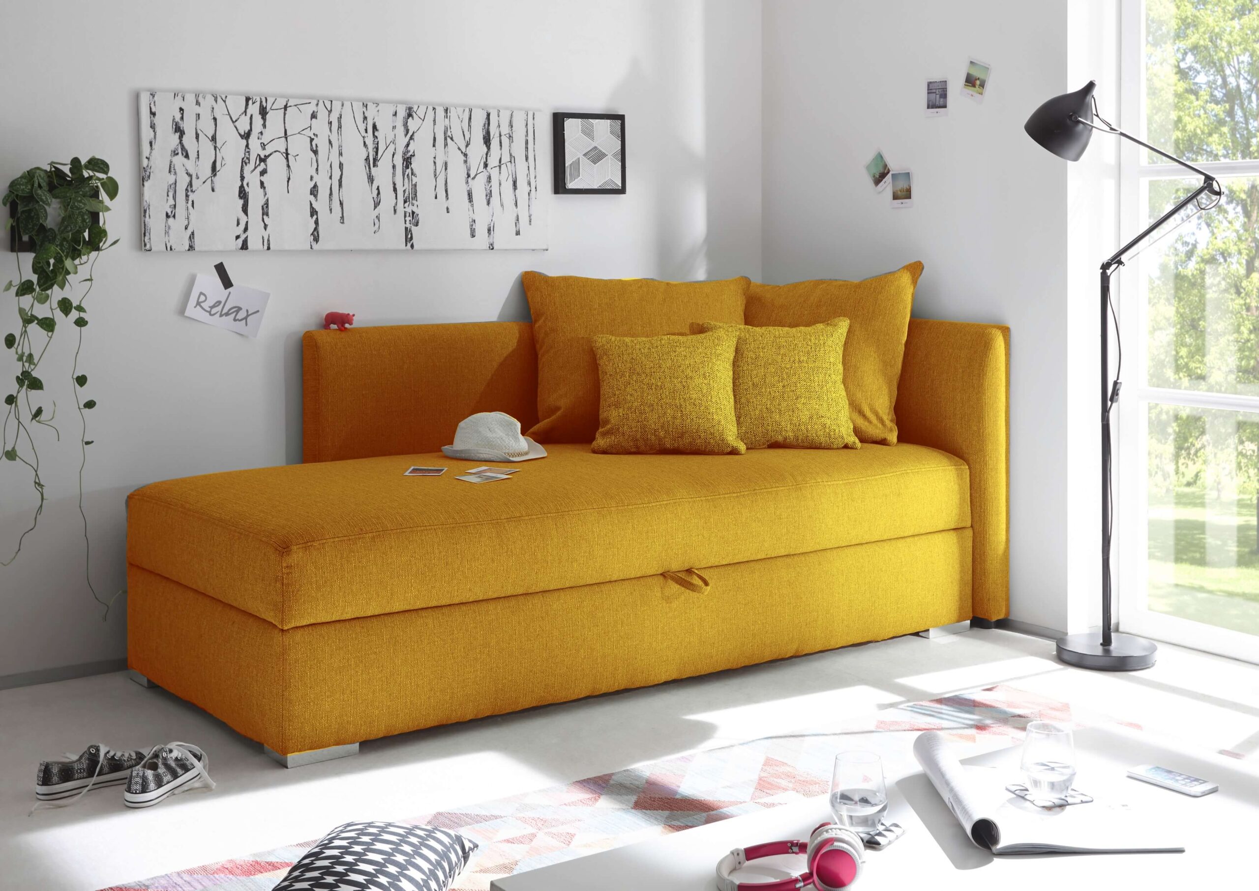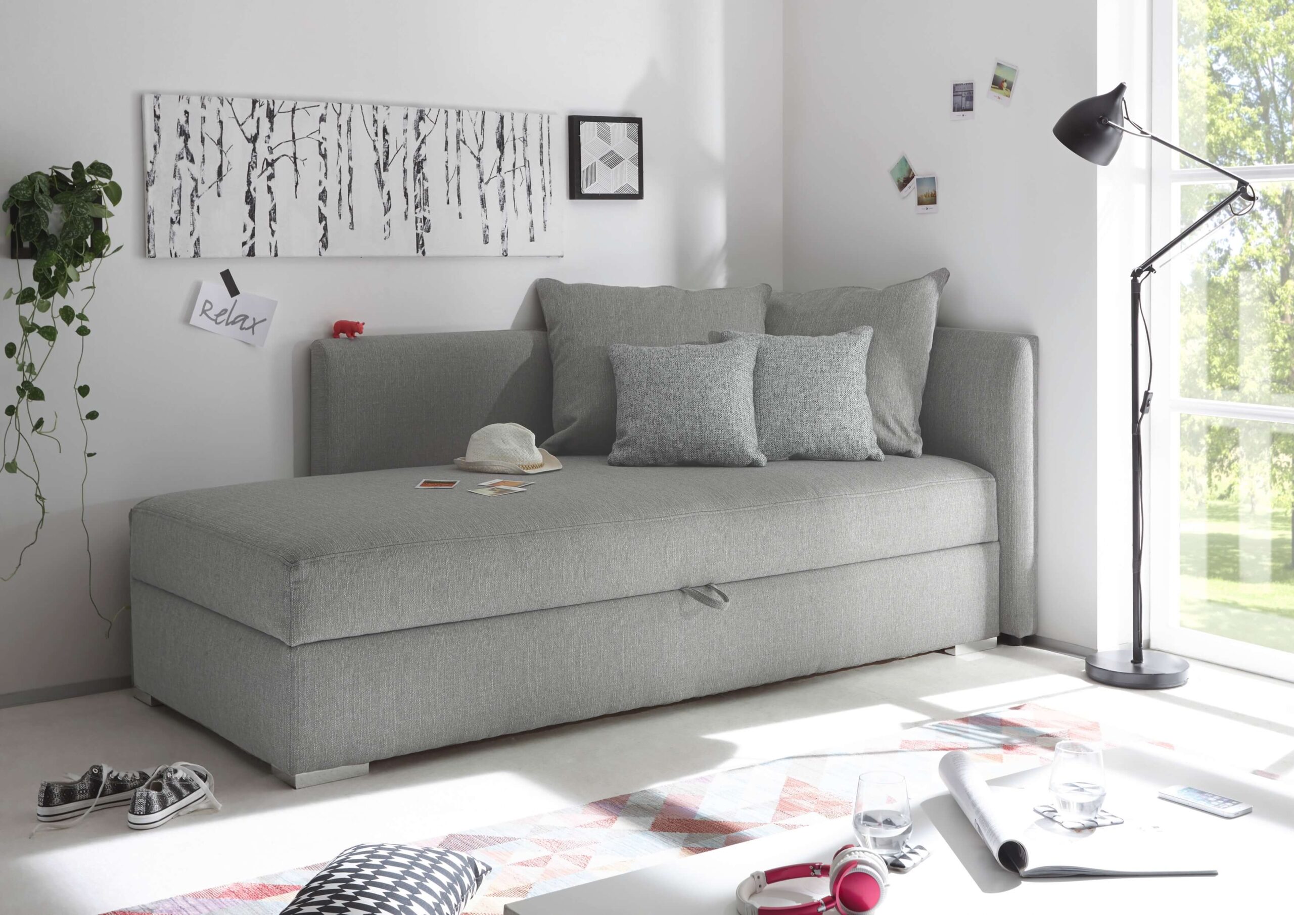 Tapczan DART to wygodne łóżko o powierzchni spania 90×200. Model ten idealnie sprawdzi się w pokojach młodzieżowych.  Łóżko posiada pojemnik na pościel, tapicerowane wezgłowie i osłonę boczną, które będą stanowić wygodne oparcie dla pleców podczas czytania książek czy oglądania programów telewizyjnych. Dzięki zastosowaniu materaca typu pocket i wysokoelastycznej pianki HR mamy gwarancję komfortowego wypoczynku.