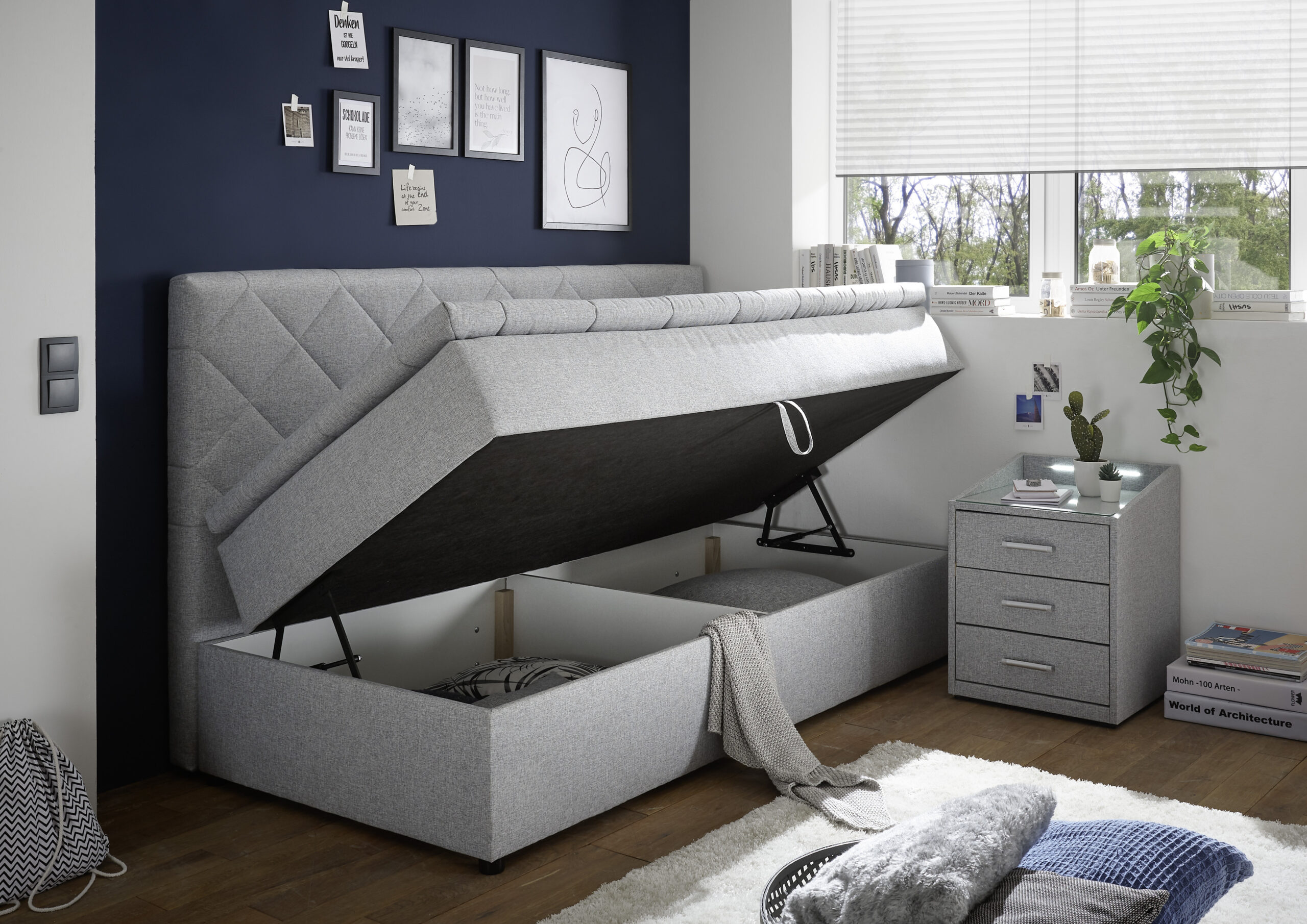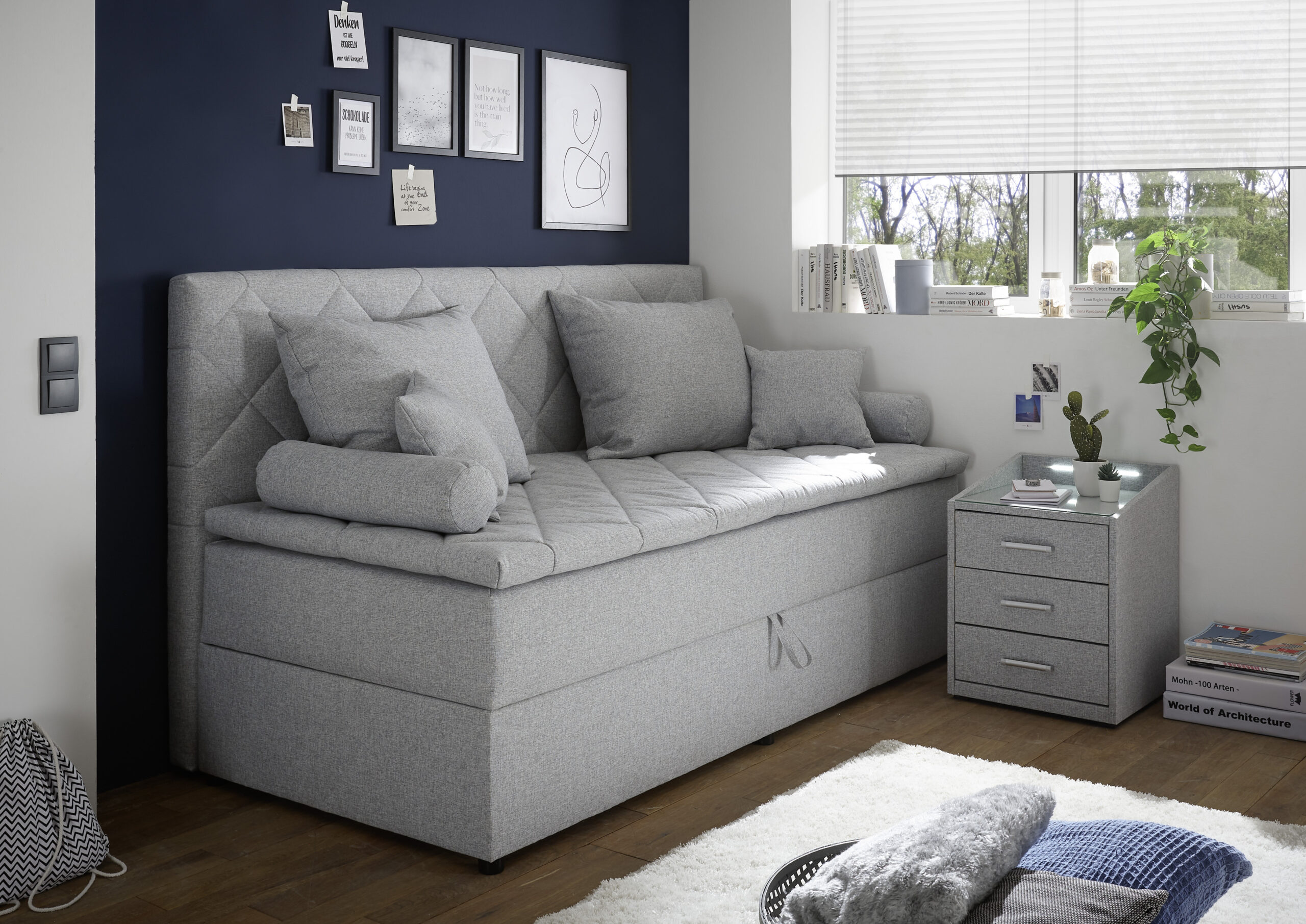 Tapczan Milo to idealne rozwiązanie do pokoju młodzieżowego. Odwracany toper spełnia dwojaką funkcję – z jednej strony pokryty tkaniną tapicerską świetnią współgra z całościa tapczanu z drugiej strony pokryty miękka tkaniną dzięki której toper spełnia zadanie wygodnego łózka do odpoczynku.